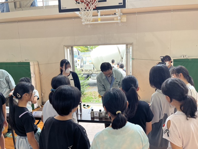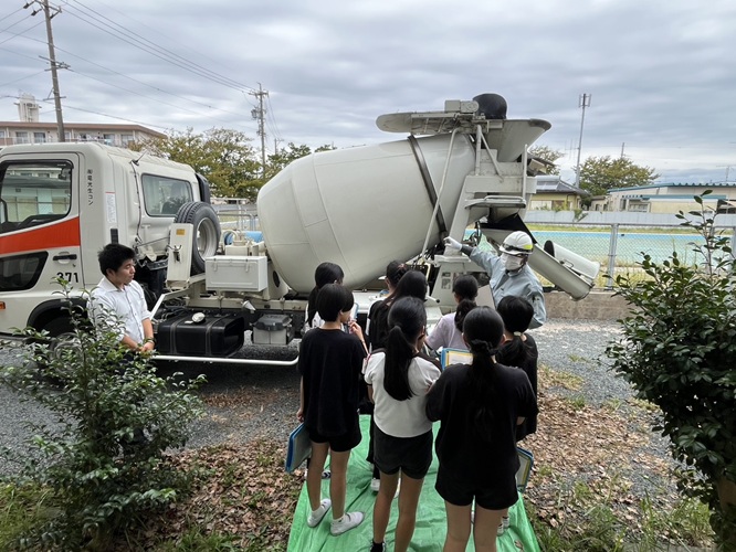 100人を超える元気いっぱいの6年生たちが、生コンについての説明をとても真剣に聞いてくれました。